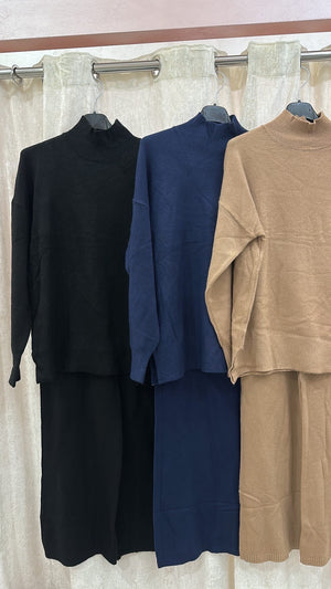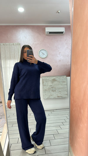 Coordinato lana doppia, collo alto, vestibilità da una XS ad una XL, pantalone con laccetti.