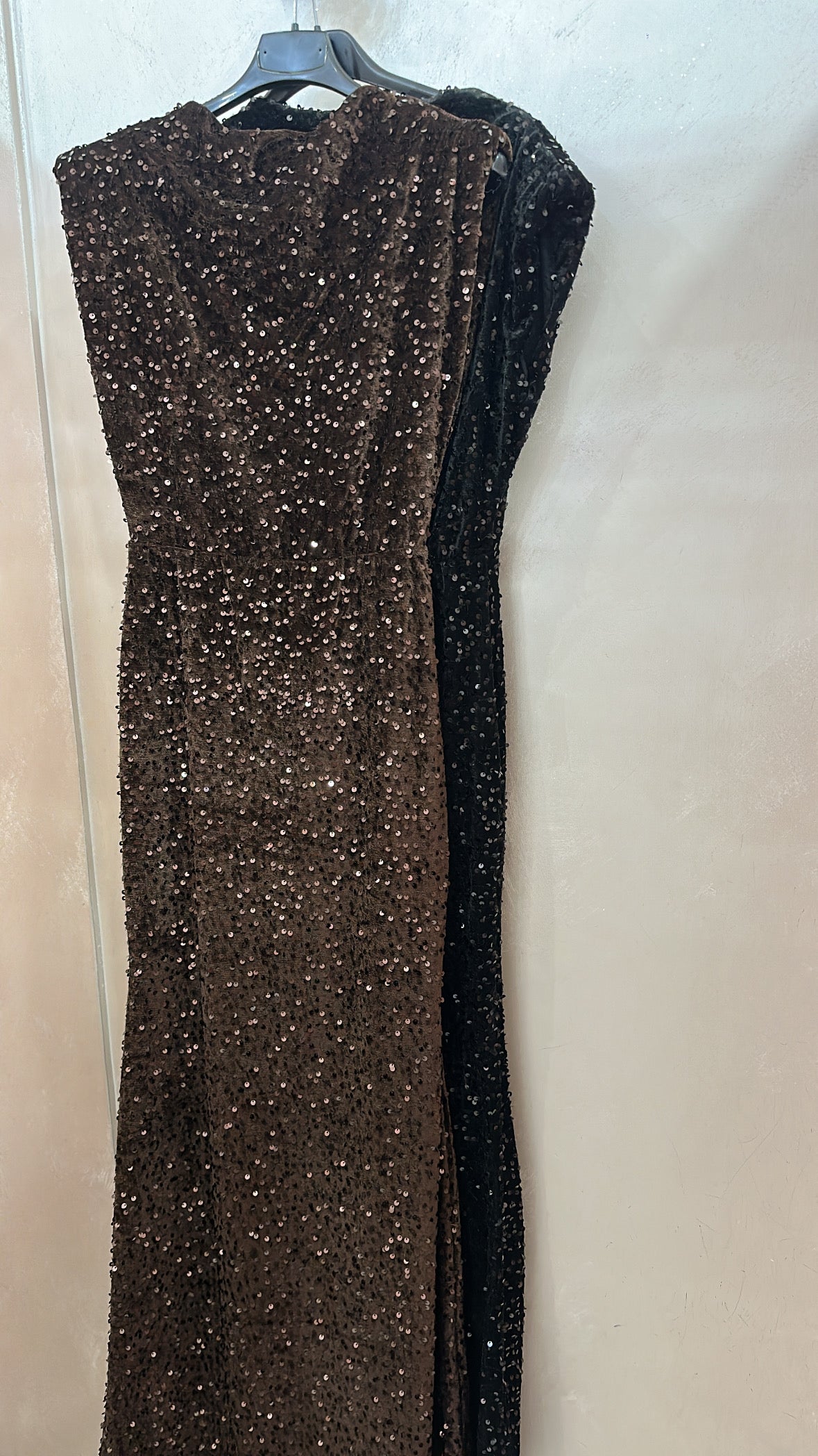 Abito lungo giromanica con paillettes, taglia unica con vestibilità fino ad una M.