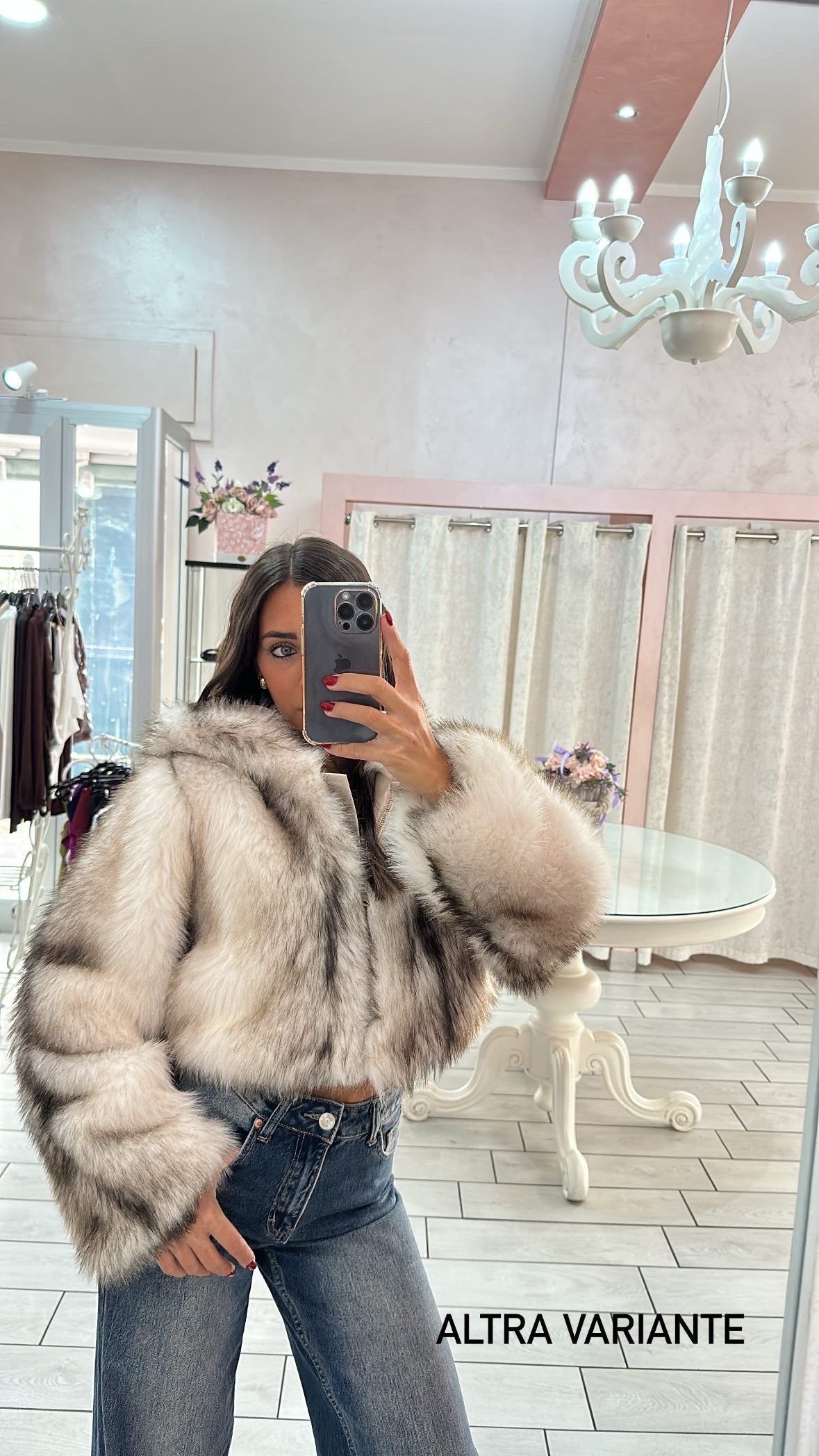 PELLICCIA ECOFUR SFUMATA CON CAPPUCCIO